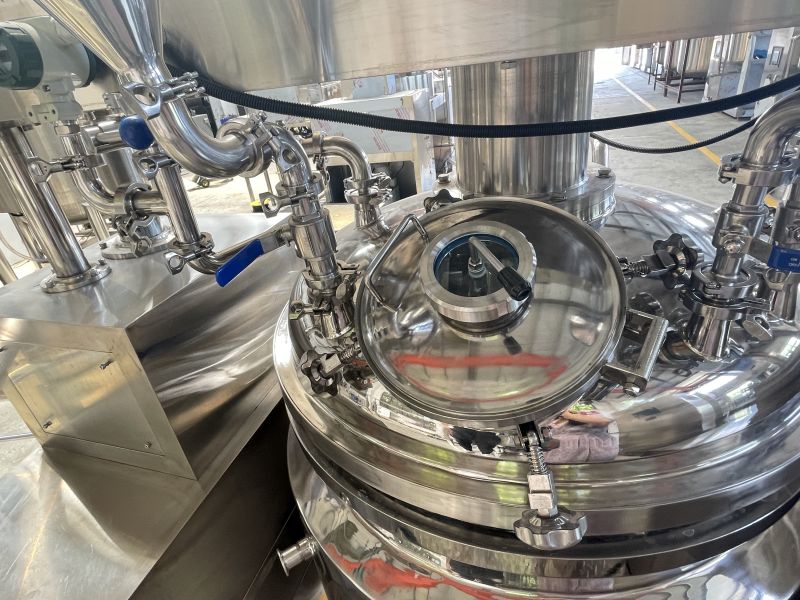 10.The CIP(Clean in Place) system is a key component of this vacuum emulsion mixer, ensuring efficient cleaning and hygiene after each batch of equipment. It is designed to simplify the cleaning process, save time and minimize manual labor. CIP systems for vacuum emulsion mixers include the following features: Spray balls or nozzles: These are strategically placed in the mixing vessel. Spray a cleaning solution or water under pressure to cover all surfaces evenly. Recirculation pump: The CIP system contains a recirculation pump that circulates the cleaning solution through a spray ball or nozzle. This ensures uniform distribution and thorough cleaning of all parts of the vacuum emulsifying mixer. Control system: The CIP system is controlled by a user-friendly control panel that allows the operator to set cleaning parameters